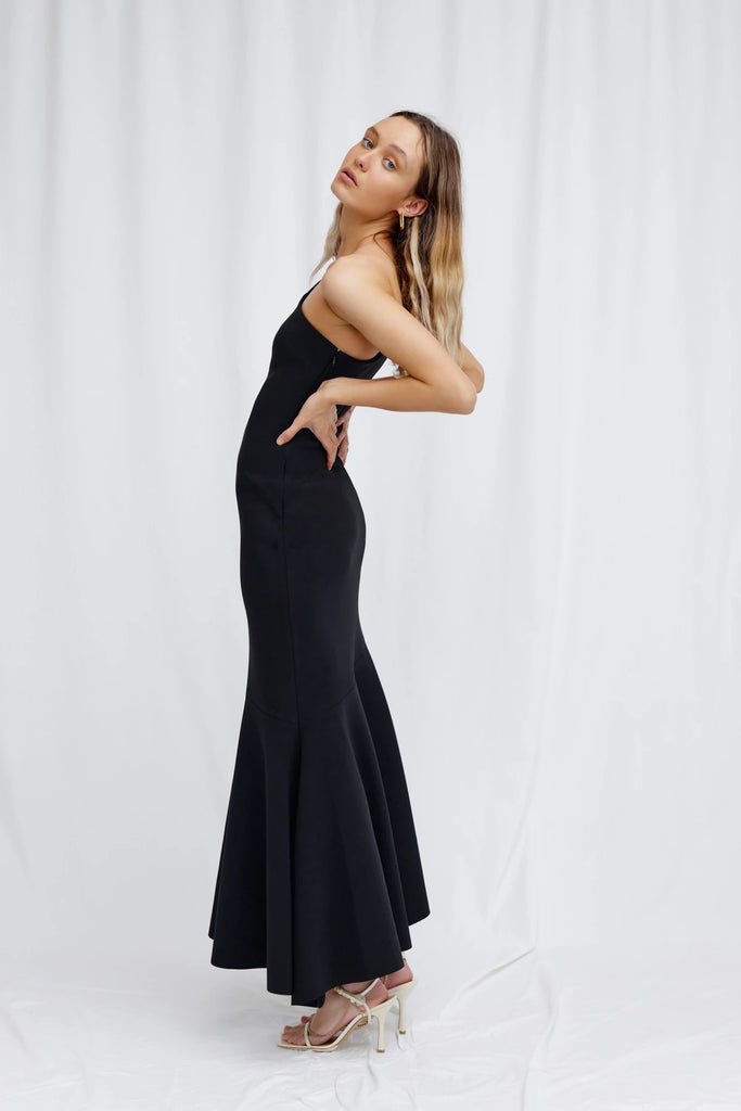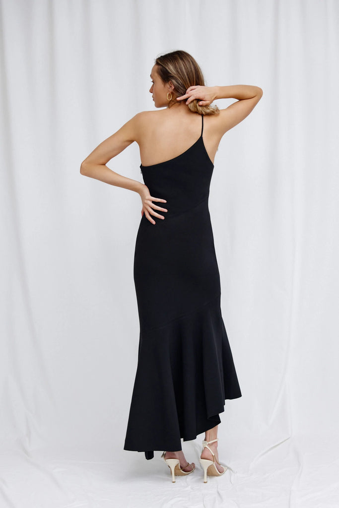An elegant addition to the collection, the Tori Dress in Black is designed to be fitted at the bodice and drape toward the hem. Crafted from a mid-weight fabrication, this style features a one shoulder design, asymmetrical hemline and gathered fabrication creating soft ruffles toward the hem.