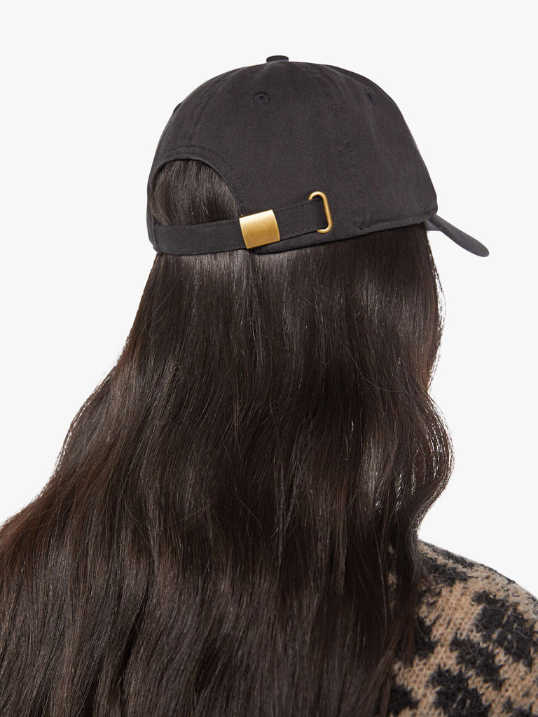 Metal head. A dad hat designed in black 100% cotton with MOTHER's name in silver studs on the front.