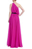 Feel the power of pink with the Belted One Shoulder Full Skirt Gown. Its feather-light Georgette fabric flows with soft folds, gorgeously draping to the floor with that dreamy, just-right flow. Pair it with a bold lip or smoky eyes to complement the dress’s vibrant hue and radiate confidence from head to toe.