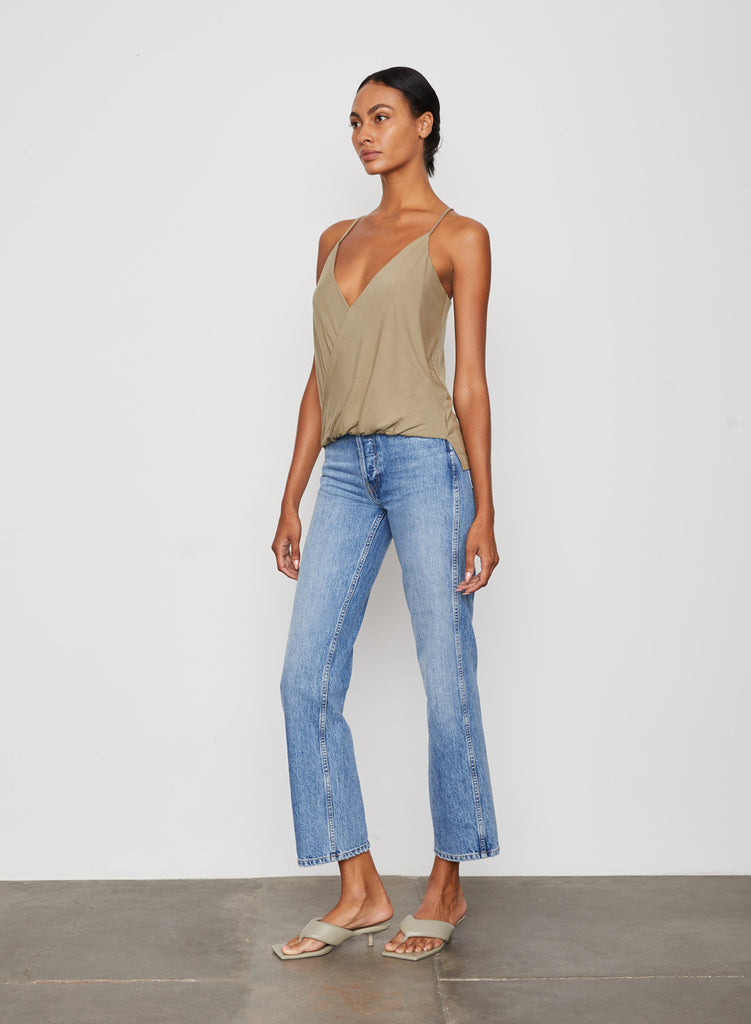 The lightweight jersey surplice cami blouse with spaghetti straps and halter back.