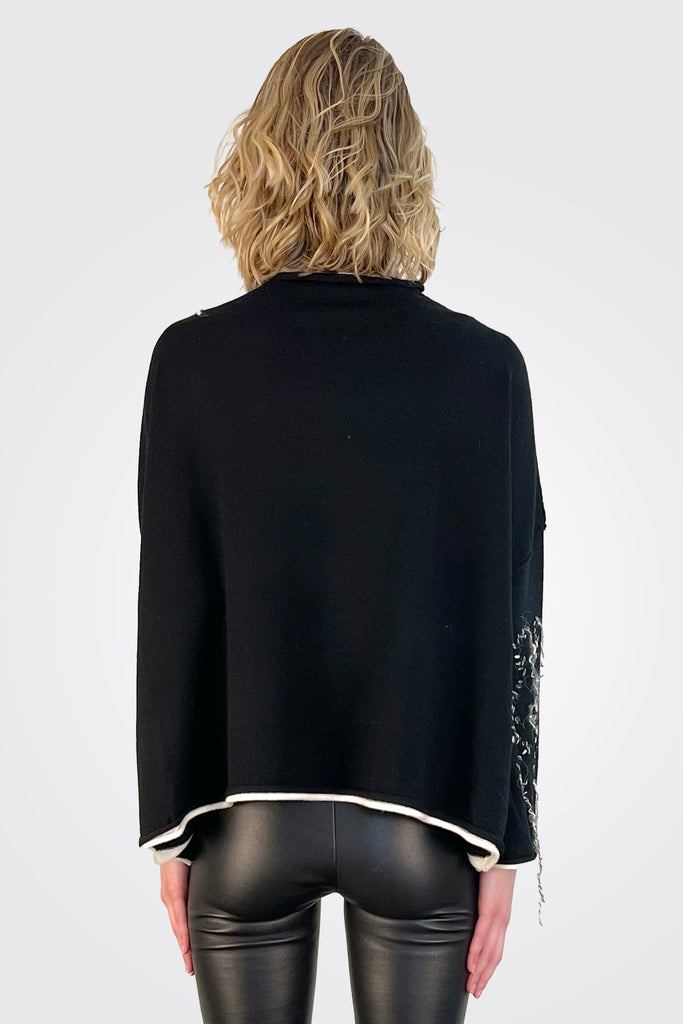 Banana Blue two tone pullover with stitching detail on shoulder and sleeve