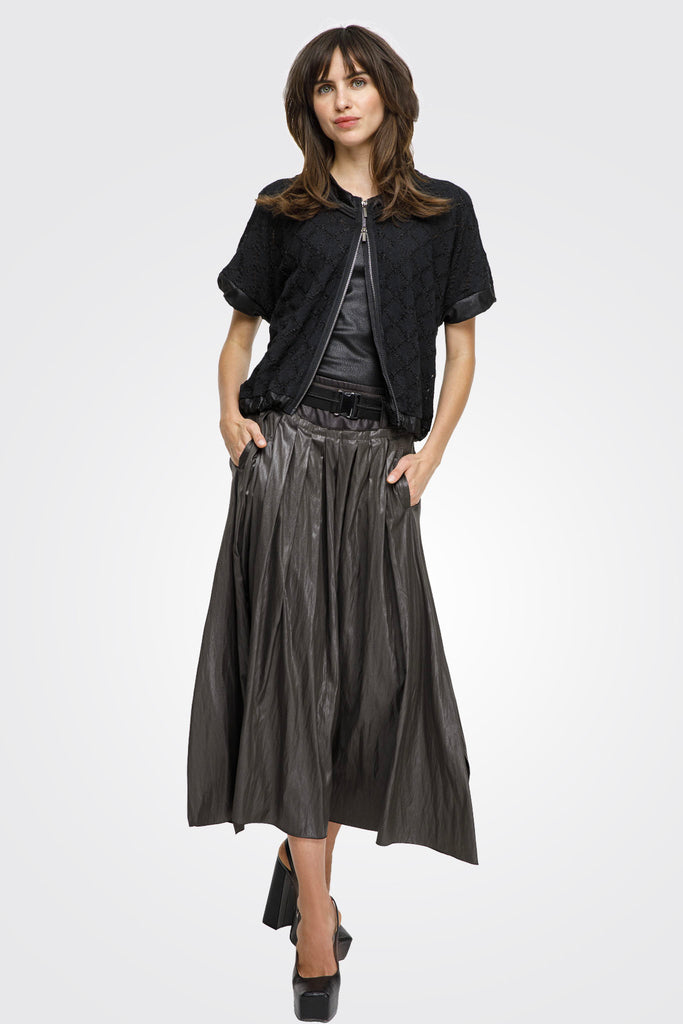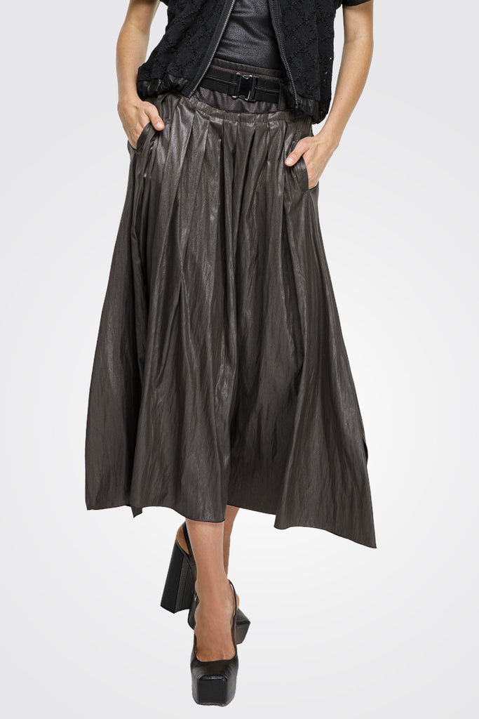 Belted Shiny Maxi Skirt - Ebony