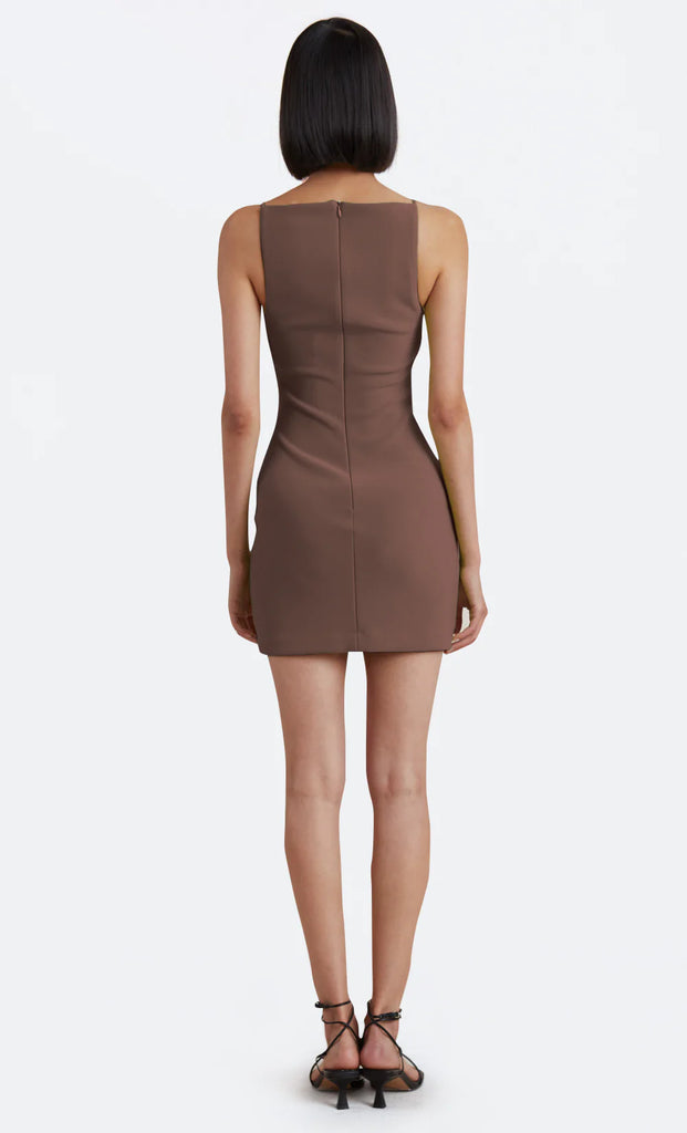 As worn by Emily Ratajkowski, the Clover Mini Dress is cut from a bonded crepe knit fabric in a bestselling, 90s-inspired silhouette.