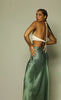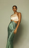 The Carrie Halter Dress is an effortless statement style cut from a fluid satin fabric. The dress features a self-tie halter neck in a flattering bias silhouette with a knotted twist front and underbust cutouts.