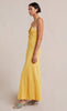 The Indya Knit Maxi Dress is a statement tear-drop maxi dress cut from a shimmering, ribbed knit metallic fabric. The dress features an under-bust tear cut away, a drawstring bodice and a V-neck halter that ties at the neck. The dress is completed with a slightly flared hem.
