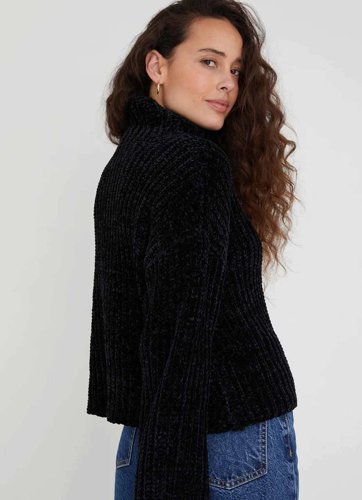 The perfect transition between seasons, this sweater features bell sleeves, a turtle neck, and oversized knit ribbing for a luxe look. Imported