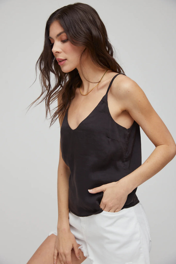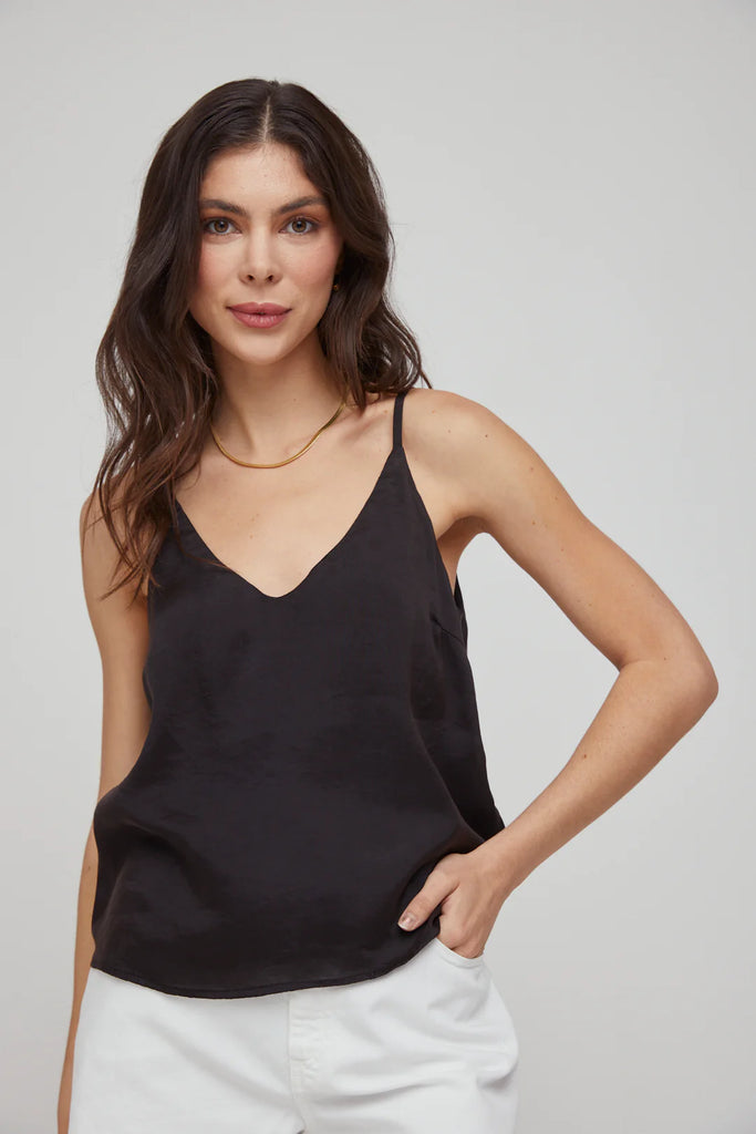 The v-neck cami is super comfortable, classic and versatile! We love how it can literally be paired with anything and how it can also be worn on repeat all year round. We love it paired with jeans and sandals for a casual look or a skirt, blazer, and heels for a more elevated look or for work. No doubt you will love this timeless piece.Made with 100% Tencel. V neck back.