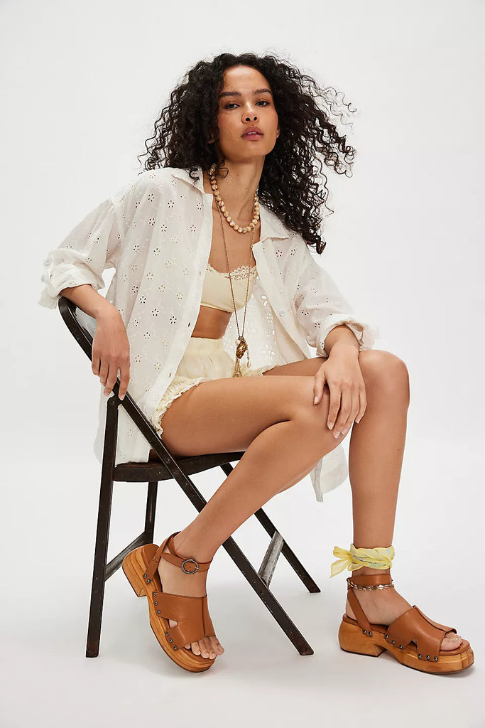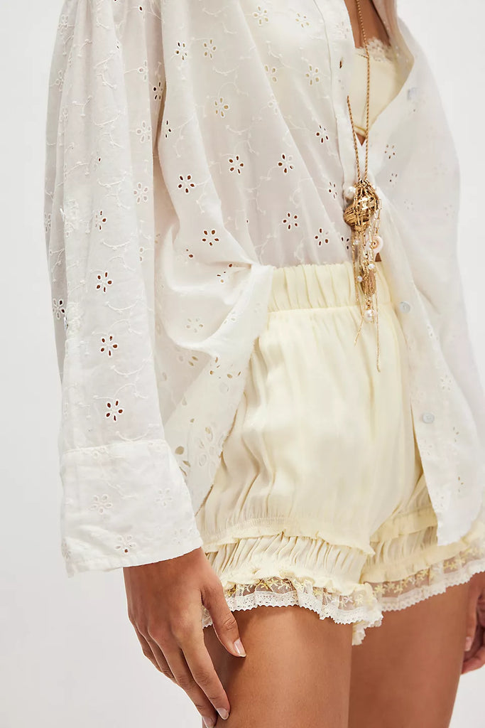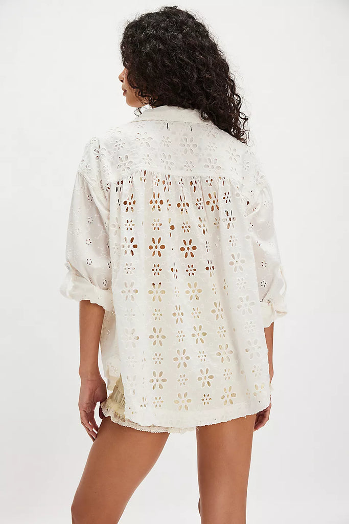 Dainty eyelets adorn every inch of this sweet button-down from We The Free, featured in a washed cotton fabrication for an even breezier look and feel.