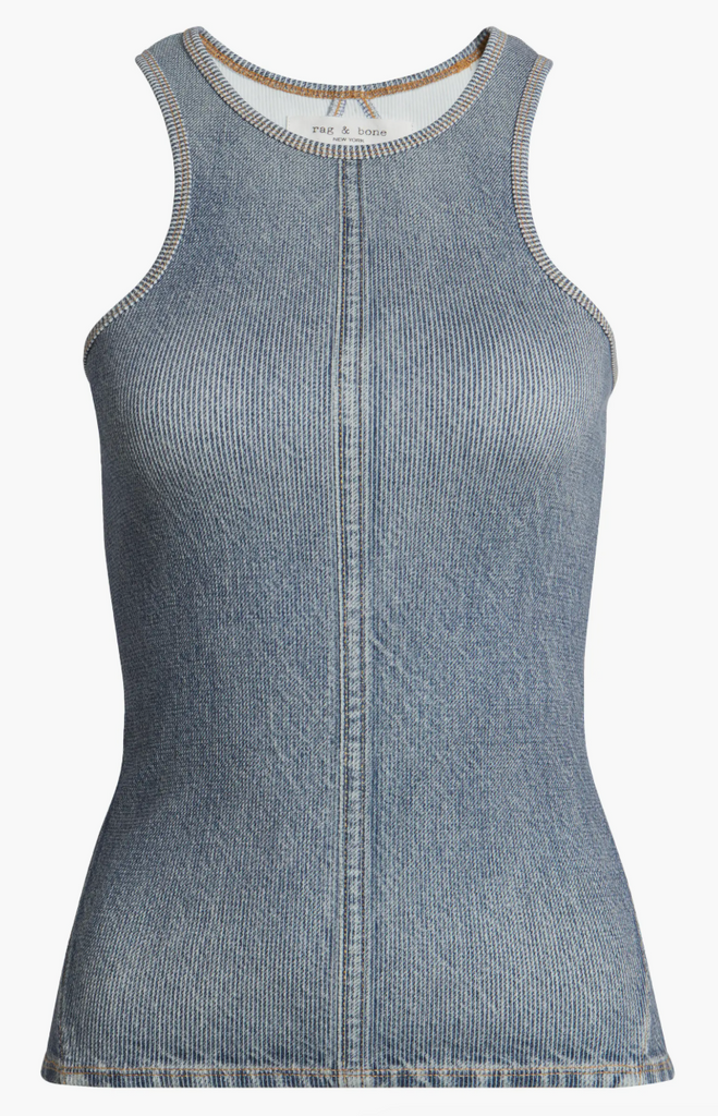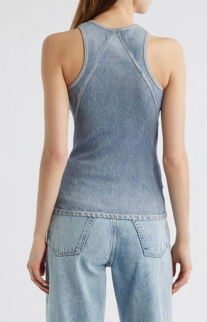 A masterpiece of deception, this fitted jersey tank is an oh-so-comfortable canvas for a photorealistic print of faded denim.