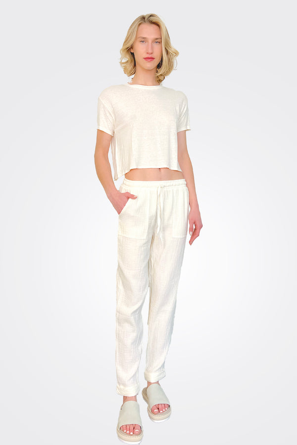 • Pointelle Long Sleeve Top – White: A classic piece that pairs effortlessly with any ensemble.
