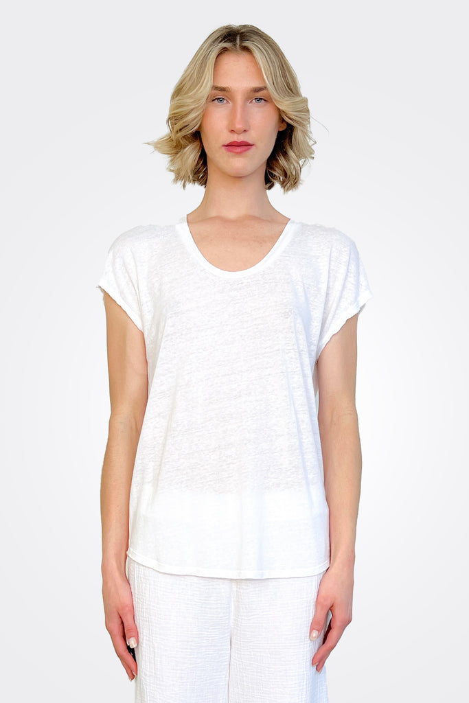 This dolman sleeve scoop neck tee is spring-ready in an ultra-luxe linen cotton jersey fabrication. A flattering cut and mint colorway make this a fresh option for warm weather styling.