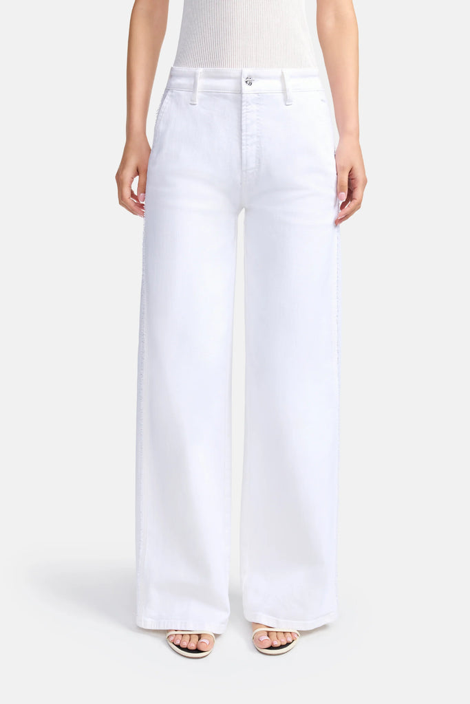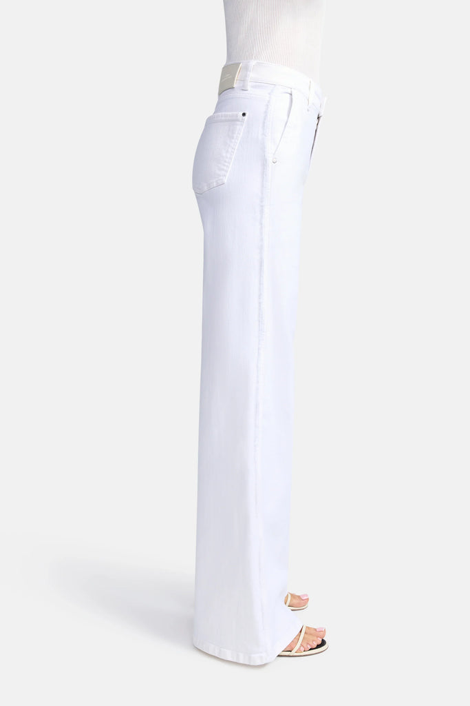 Wide leg denim ALEK in full length. The wide jeans in white with a soft feel and casual A-shape are a fashion highlight of the current CAMBIO collection and conjure up a feminine, flowing silhouette. The jeans form an ideal basis for fashion looks from casual to elegant and can therefore be combined in many different ways. Stretch ensures additional comfort.