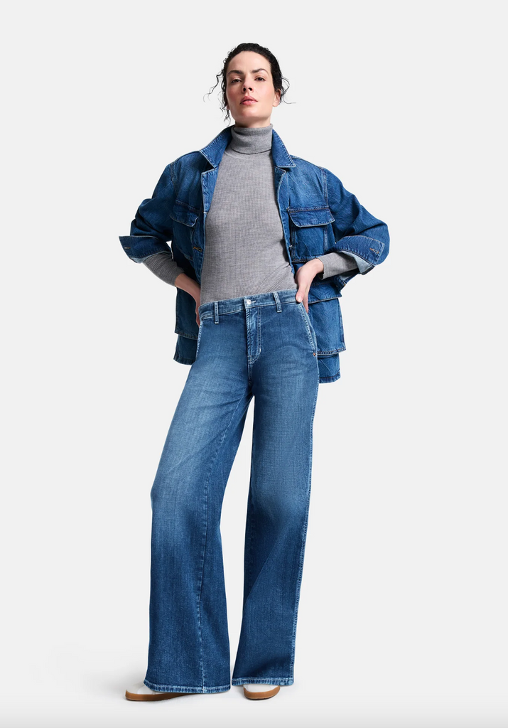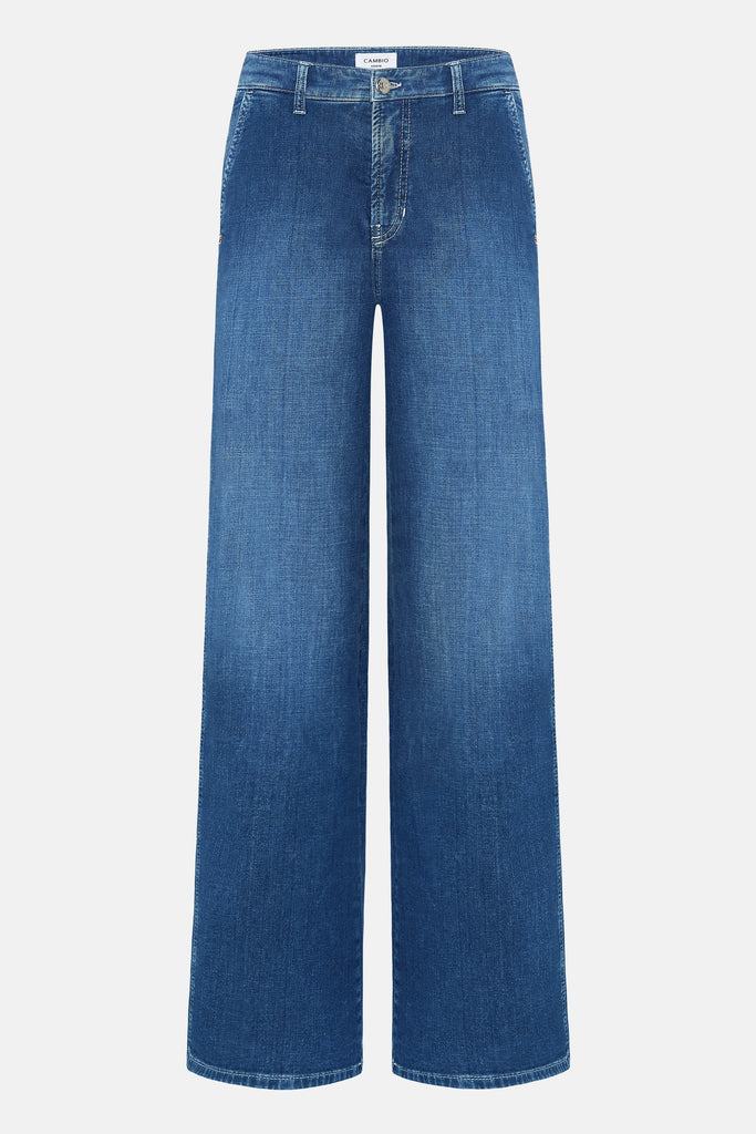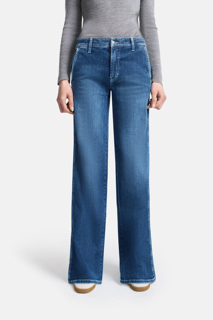 Wide leg jeans ALEK in full length. The authentic blue denim in a casual A-shape has a modern light wash and gets its comfort from elastane.