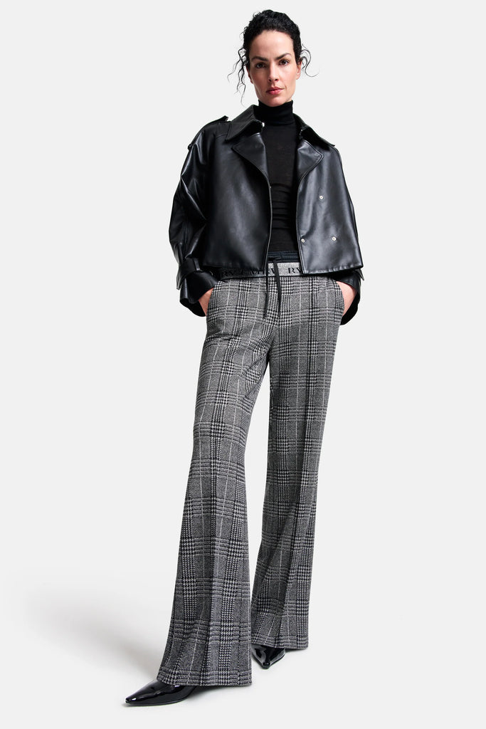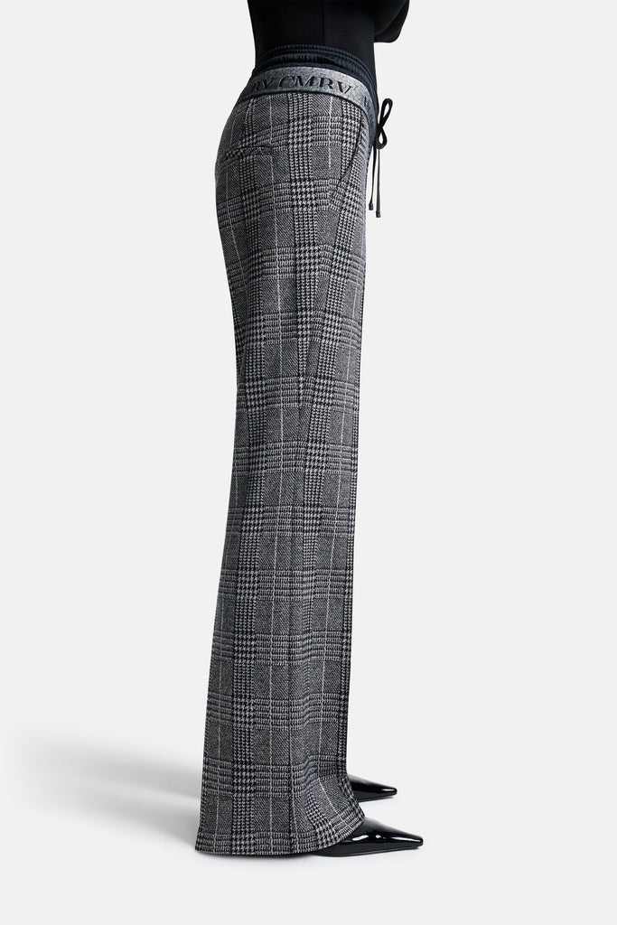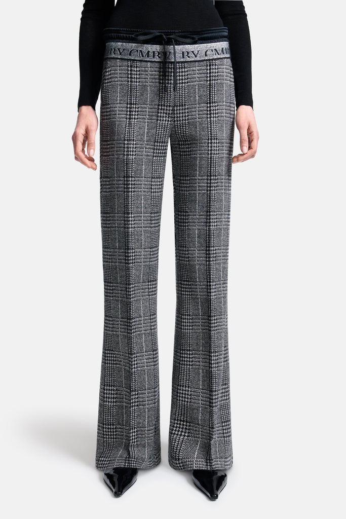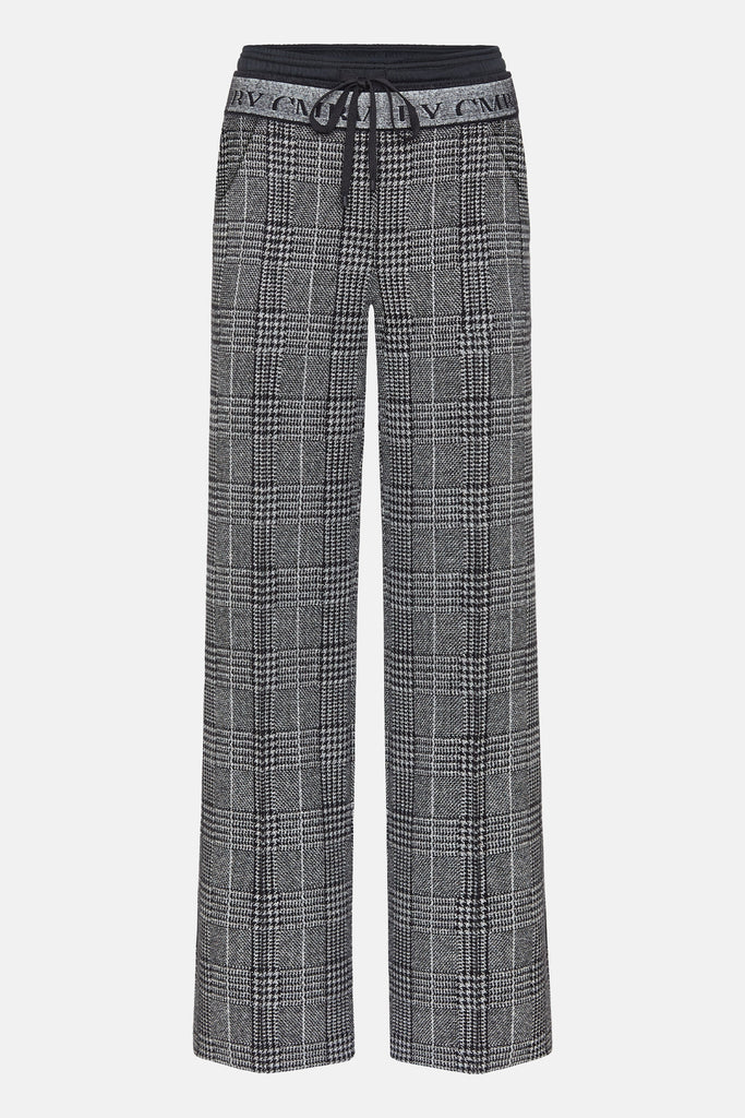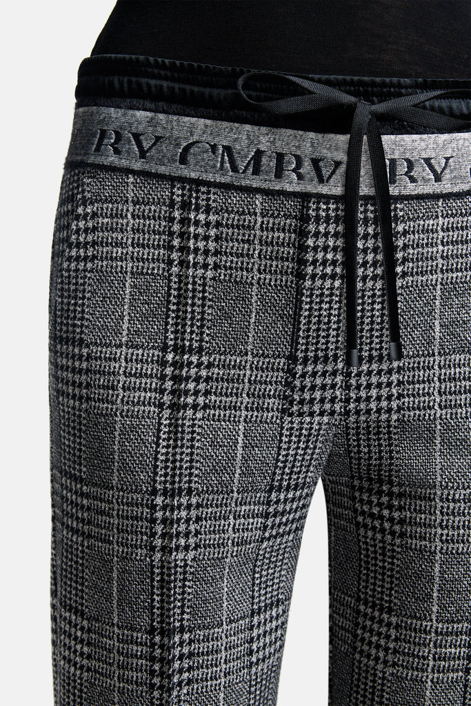 Wide leg pants AVA DOUBLE JOGG in full length with a modern double waistband. The pants in a casual A-shape ensure comfort thanks to cozy jersey and a fashionable silhouette. Available in the color: grey-black brushed glencheck.