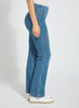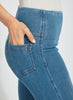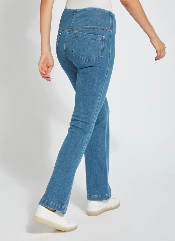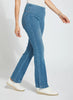Crafted from stretchy Knit Denim, the work or leisure Baby Bootcut offers pull-on styling, a concealed patented waistband and contrast-color top stitching. These bootcut jeans are rich in detail with studded back pockets and anatomical seaming that lifts and contours. The Baby Bootcut jean skims the hips and thighs before falling into an open bootcut hem. Pull them on for work or play with an ivory mock-neck top, black booties and faux leather fringed jacket.