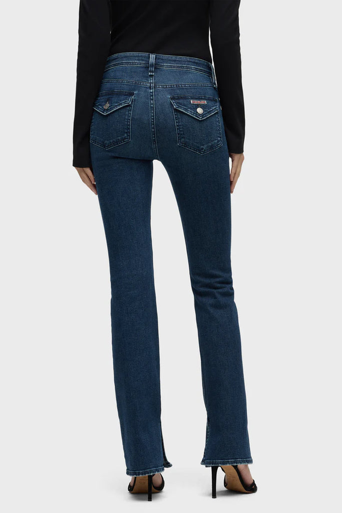 Streamlined and flattering, our Barbara High-Rise Bootcut w/ Flap Jean in medium-indigo Olympia is cut for a slim, contoured fit with an elevated waistline and a gently flared leg. The pair debuts for Fall with our updated button-flap pocket with a new modern shape. Made from a premium stretch denim, it’s finished with grinding along the edges and a clean hem.