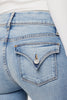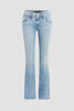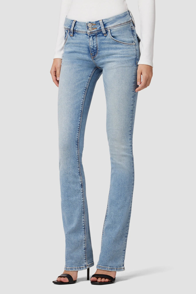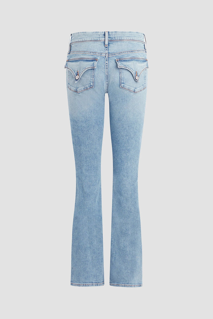 Cut with premium stretch denim, our Beth Mid-Rise Baby Bootcut Jean in light indigo Motion features expert fading, a subtly flared silhouette, and our signature button-flap back pockets.