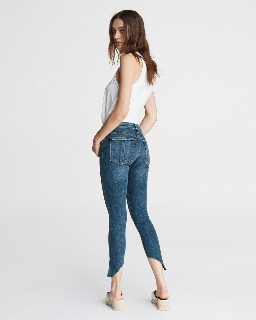 Hampton is a mid indigo washed denim cut in rag & bone's iconic Cate: our perfected mid-rise silhouette. Sitting at the natural waist, the Cate Mid-Rise Ankle Skinny is slim through the hip and thigh with a skinny leg.
