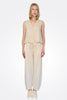 Slub cotton knit trousers with drawstring. Wide and slightly closed at the bottom. Embossed detail that runs along the entire leg. Garment dyed.