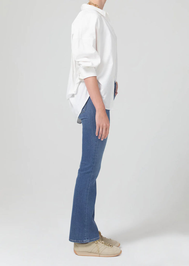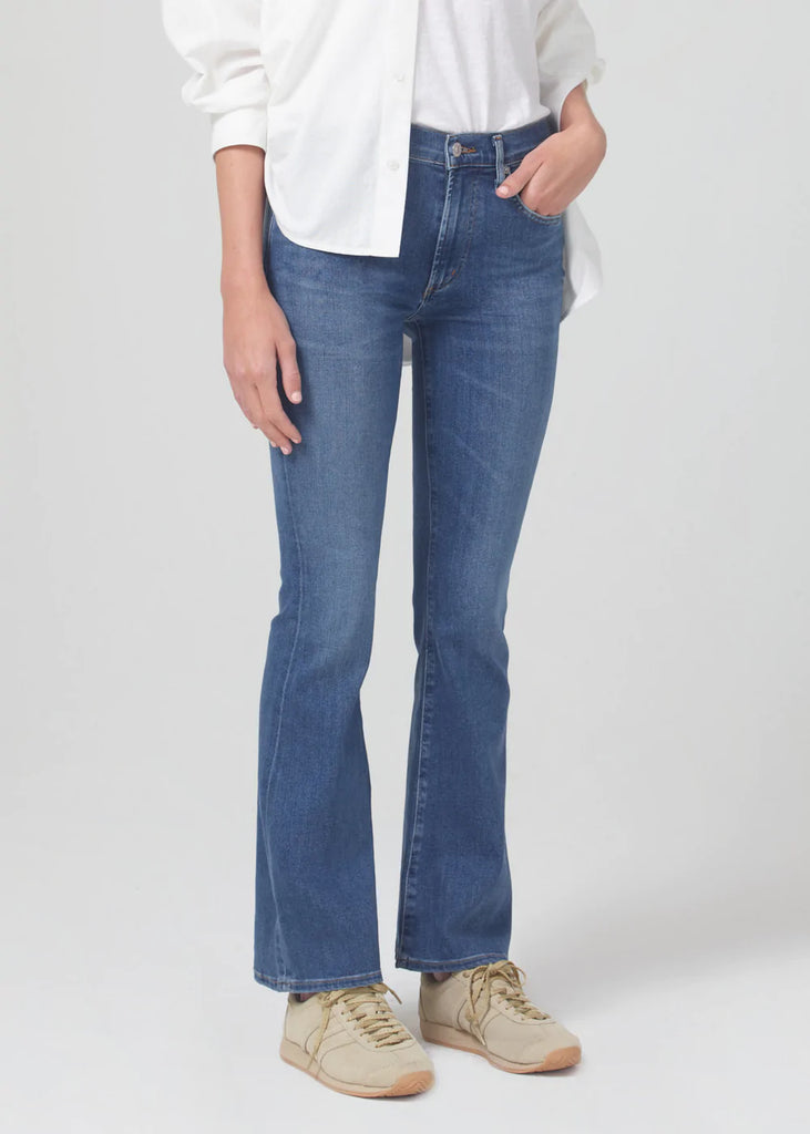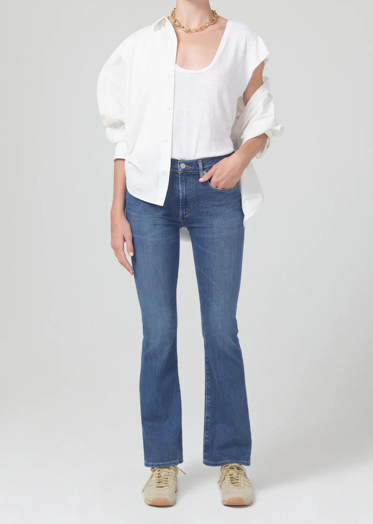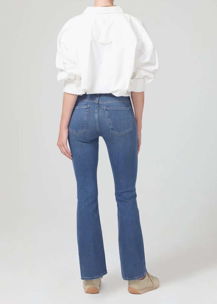 Cut to make your legs look endless, this low-slung pair offers a traditional bootcut silhouette that hugs and holds the legs before gradually flaring out past the knees. Style yours with a heel and statement blouse.
