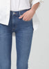 Looks Like: Medium indigo with slight fading and a finished hem
