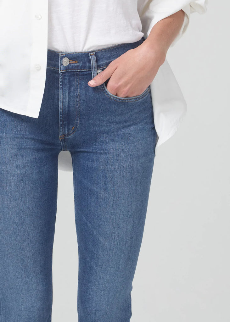 Feels Like: An ultra-comfortable stretch denim that hugs and shapes the body, maintaining its form wear after wear
