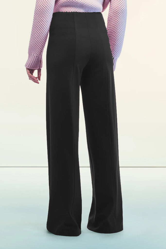 MILANO STITCH PALAZZO TROUSERS WITH CENTRE-LEG CUT-OUTS AT THE FRONT AND BACK AND RAW-CUT ADJUSTABLE BOTTOM. FRONT CLOSURE WITH ZIPPER AND COUNTER-BUTTON. REGULAR FIT.