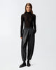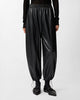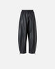 Balloon-fit trousers with a soft balloon leg that is rounded at the top and more cinched on the hem. This style is made from a particularly lightweight faux leather coated fabric and features a comfortable elasticated waist. The design can be customised thanks to the trekking-inspired drawstring on the hems that allows you to adjust the volume. The inner fabric lining ensures maximum comfort when worn.