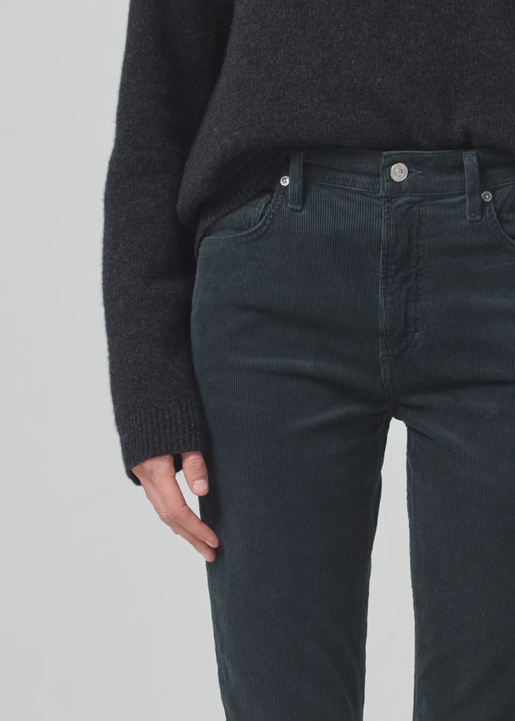 Your new go-to. The Isola features a flattering mid rise with a close fit through the leg and subtle bootcut flare. This cropped fit hits right above the ankle, making them the perfect pair to show off your shoe of choice. This transitional style is now crafted in our Stretch Corduroy, making the perfect closest staple for the cooler weather.