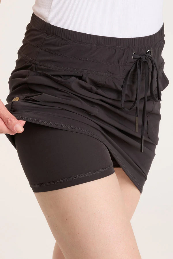 Remember the genius that put shorts UNDER a skirt and gave us the skort? We don't either, but we appreciate the innovation! Jett utilizes a 2-in-1 situation and features a 4-way stretch short built under its cute exterior. A drawstring waist, front pockets and snap side seams round out this active little dream!