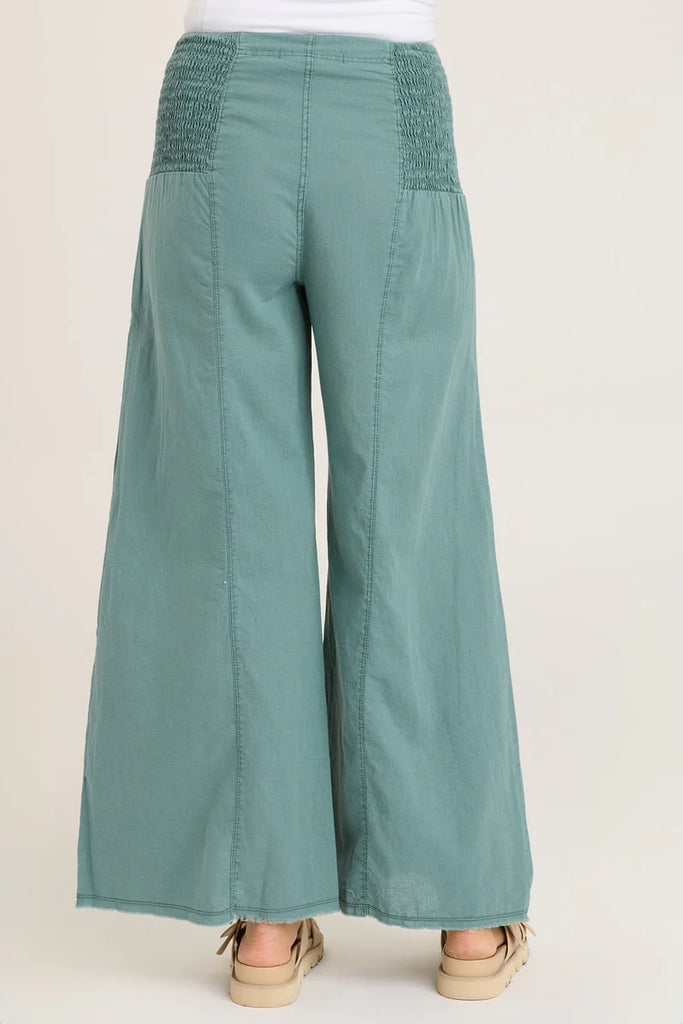 Ruched waist panels and a flared leg gives Kaj all the drama with slimming demure.