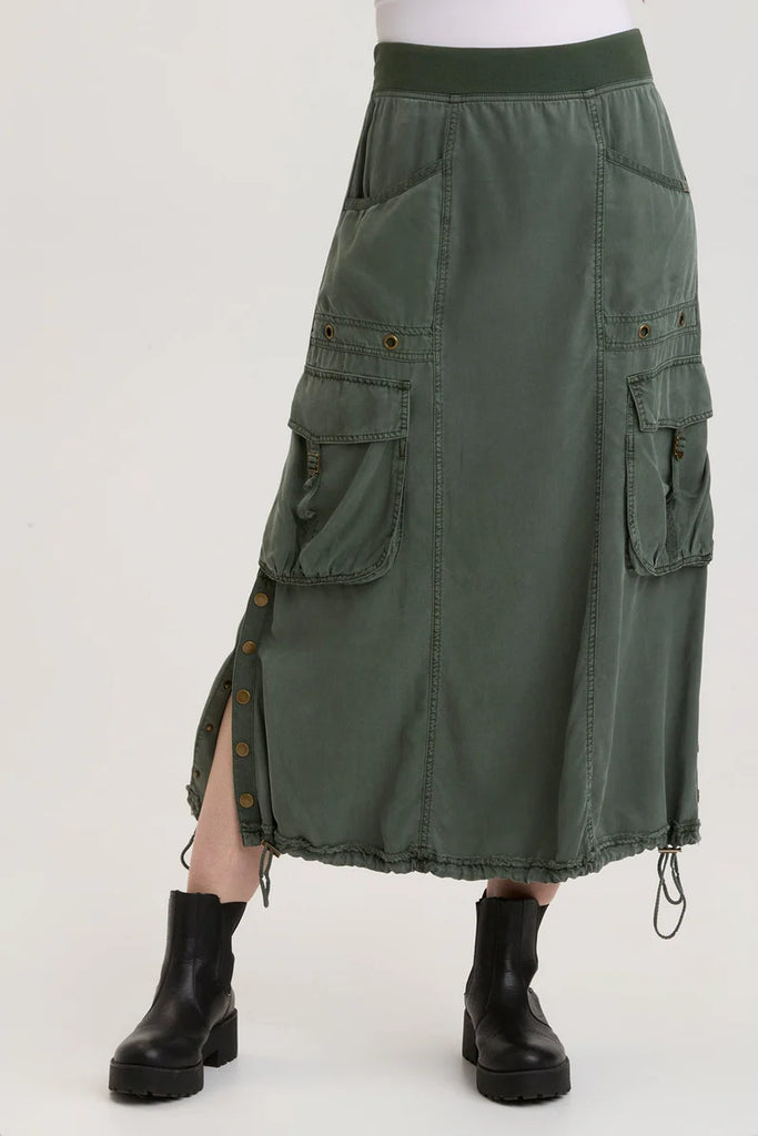 Do you like huge awesome cargo pockets? We do too! And Leslyn does not disappoint. Featuring exaggerated cargo pockets a snap-up side split and a cinchable bubble hem, this pull-on waist, front pocket skirt is guaranteed to spice up your life!