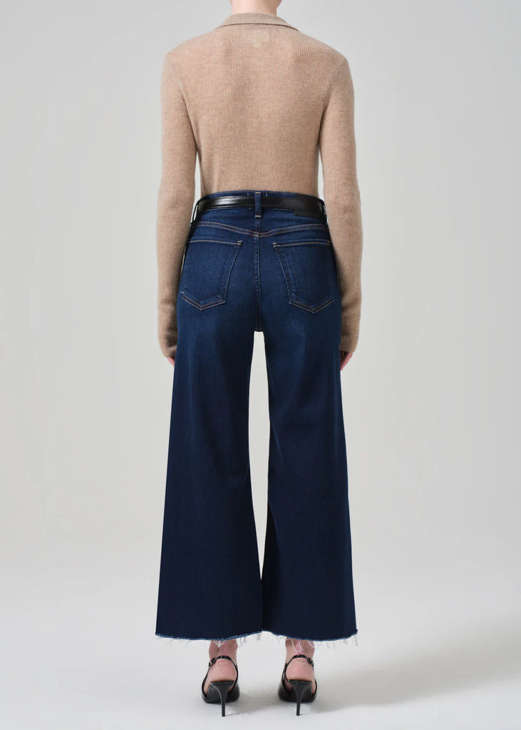 Lyra is a vintage inspired silhouette that sits high on the waist with an easy, relaxed top block cut with a cropped inseam with a voluminous wide leg.