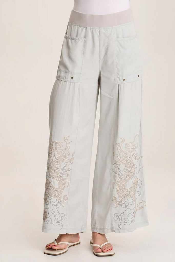 Phedora Twill Embroidered Wide Leg Pant - Grey Marble
