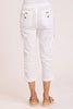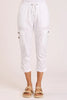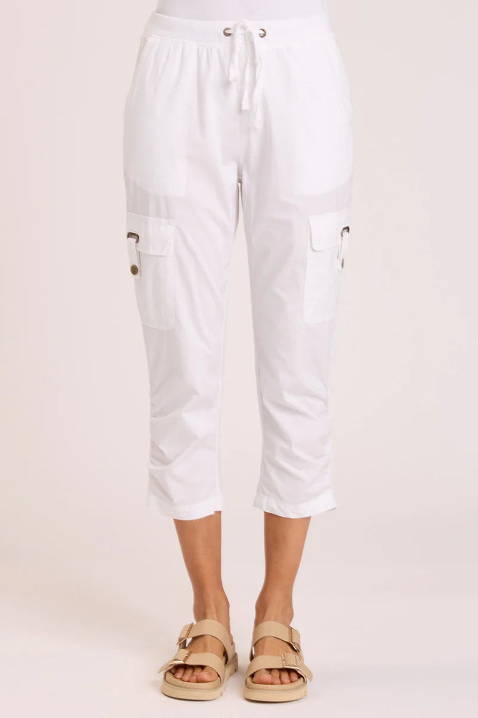 Take a minute to check out with this dynamic crop! With classic XCVI leg shirrings, tabbed and oval gromment closure cargo and back pockets, plus a drawstring waist and a clean silhouette, Fenton is a sassy little mix of traditonal and progressive.