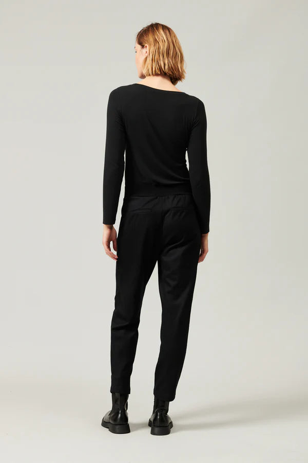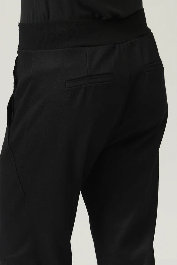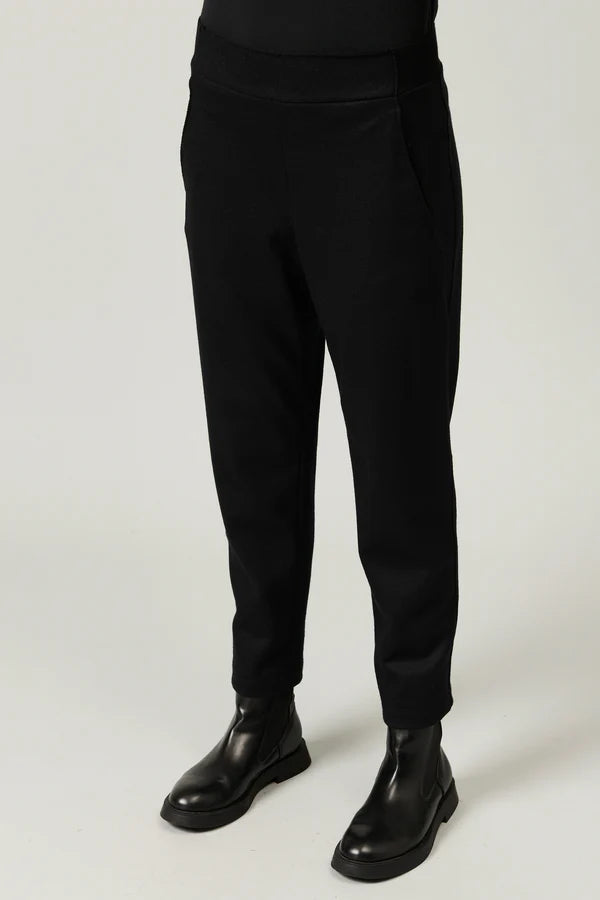 Slim-fit trousers with part of the waistband in knit, pockets on the cut.
