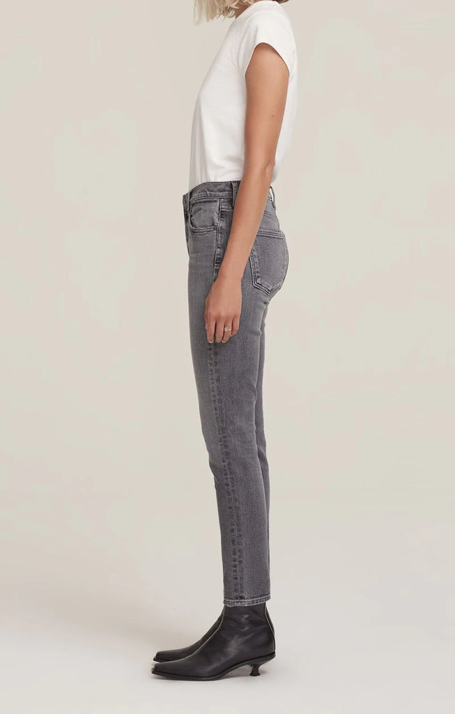 AGOLDE's signature skinny. This timeless mid-rise has a flattering ultra-slim fit, intended to curve and elongate the legs. Made from stretch denim in subtly faded black wash.