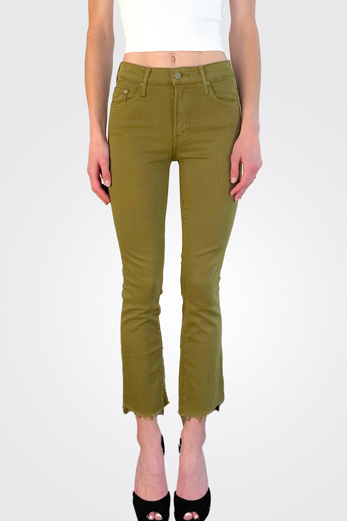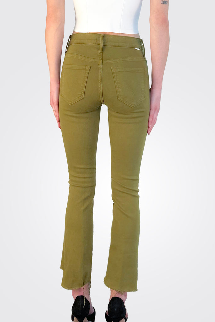 This iconic high-waisted bootcut hits at the ankle with a frayed step-hem. Made from stretch fabric in a fir green hue with tonal hardware.Made in Los Angeles.Style No. 1157-753-FRG