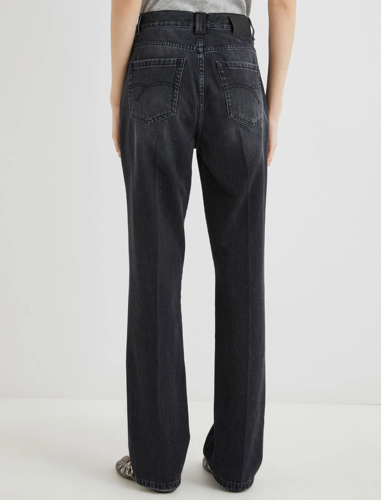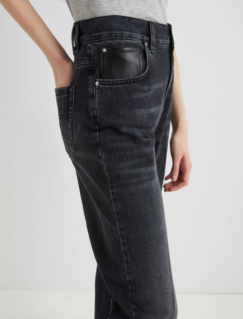 - Embroidered topstitching on the rear pockets and a branded leather rear hem tag