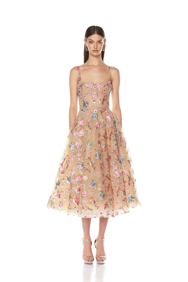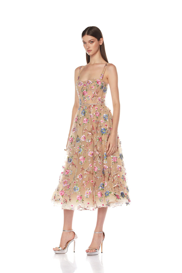 The Mademoiselle Bridal Midi Dress is ideal for brides seeking a blend of tradition and modernity. Its timeless design and luxurious fabric make it a standout choice for any bridal ensemble.