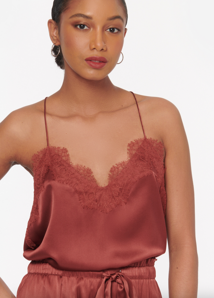 brand favorite Racer Charmeuse Cami is crafted in a silk sandwash charmeuse and features a V-neckline with delicate and feminine French lace trimming. This light-weight camisole style has a racer back construction and a relaxed fitting bodice. The perfect day to night wardrobe builder. This year-round classic is available in White, complimenting all your wardrobe needs.
