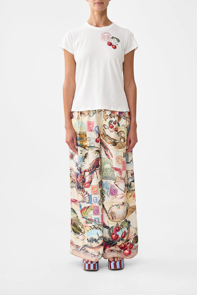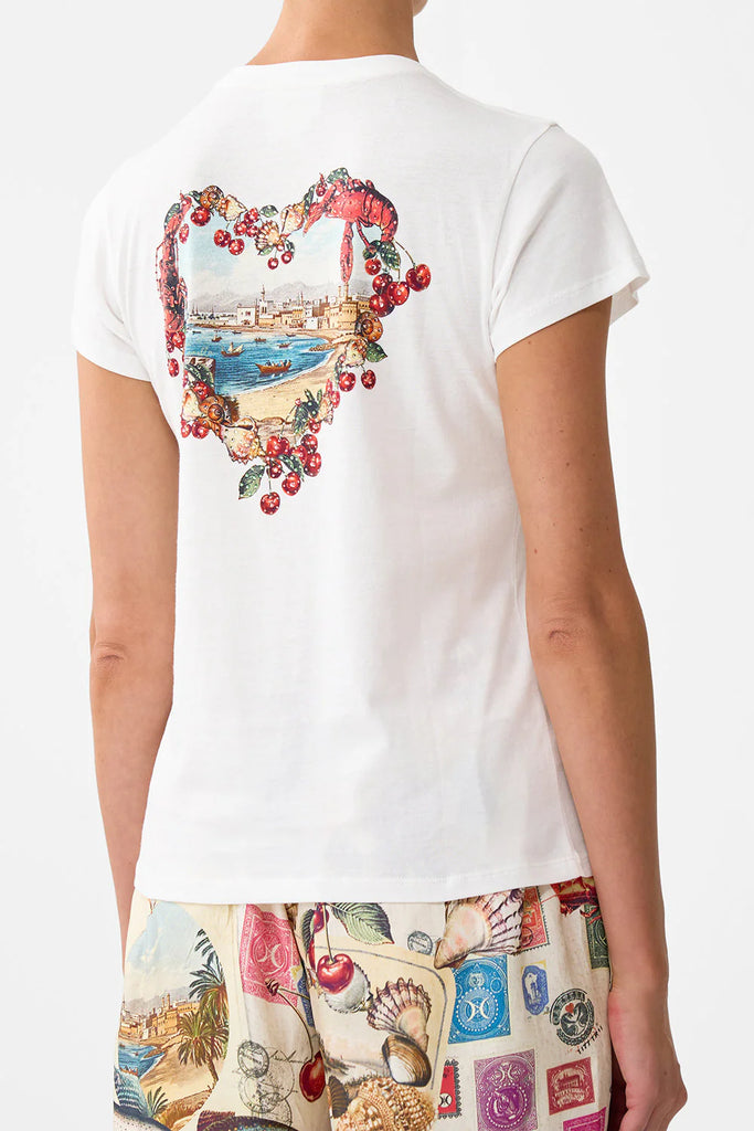 The Notes From The Road Slim Fit Round Neck T-Shirt is a handcrafted cotton silhouette designed by our in house artisans. Reimagined in an exclusive limited edition print, this slim fit t shirt is adorned with intricately placed crystal embellishment before being finished with a rounded neckline complete with ribbed detailing.
