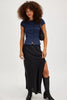 Cute and classic, this shrunken cardi is featured in a hugging ribbed fabrication with short capped sleeves and buttons all the way up the front.