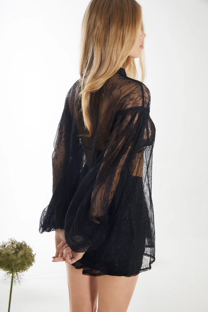 Feel beautiful in the CARALLE shirt. This garment exudes sophistication and femininity, fusing the delicacy of lace with contemporary lines to create a timeless and modern piece. The piece exudes an air of romance and refinement, with its intricate pattern adding texture and its collar and button placket finishes adding elegance.