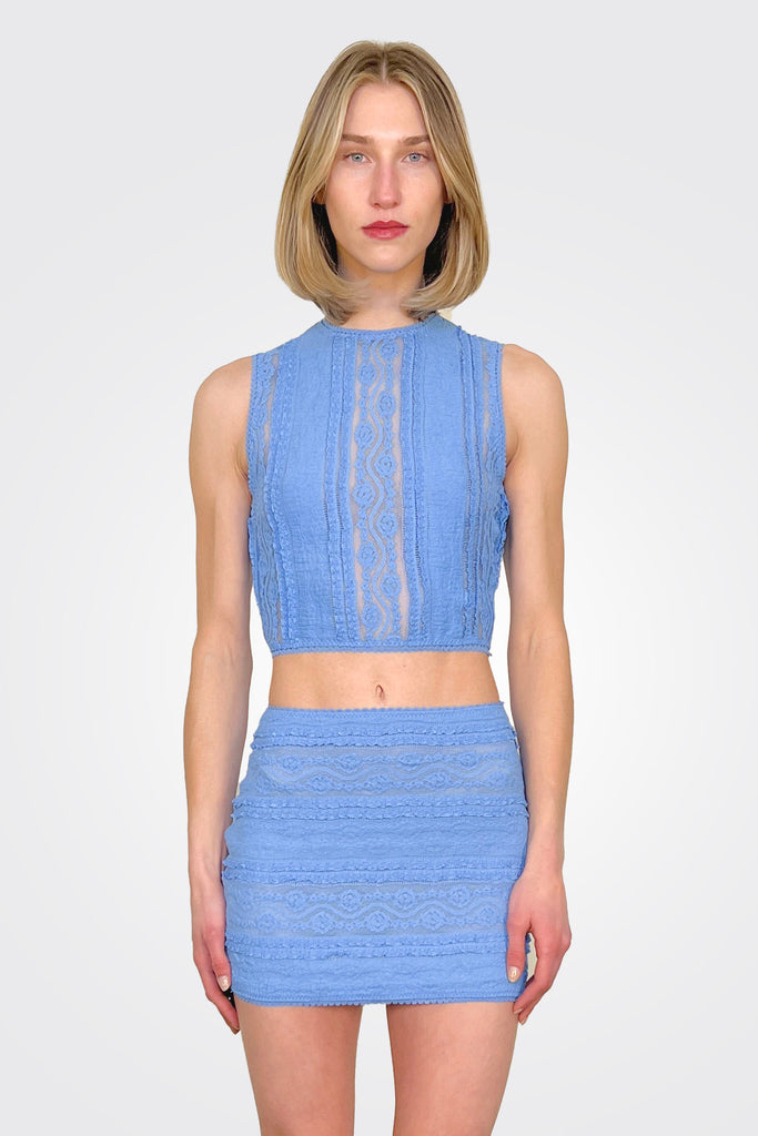 The AMPHY mini skirt in mesh fabric with cotton enhances your silhouette and becomes your go-to of the season thanks to its beautiful texture and play of opacities. Combine it with the tops from the collection for the total look of your dreams.