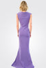 A stunning portrait collar draws attention to this floor-grazing mermaid gown featuring a raw-edge hem that won't fray when cut for easy tailoring.
