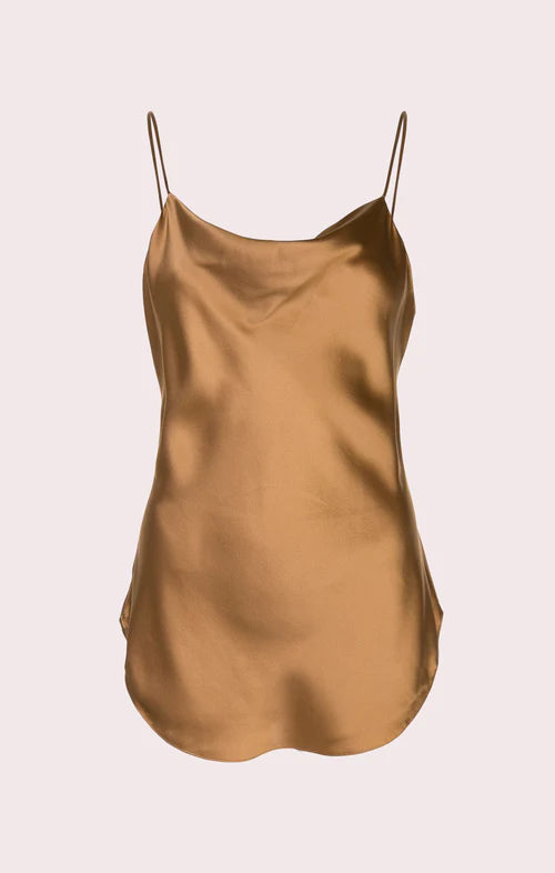 Silk camisole with cowl neckline.