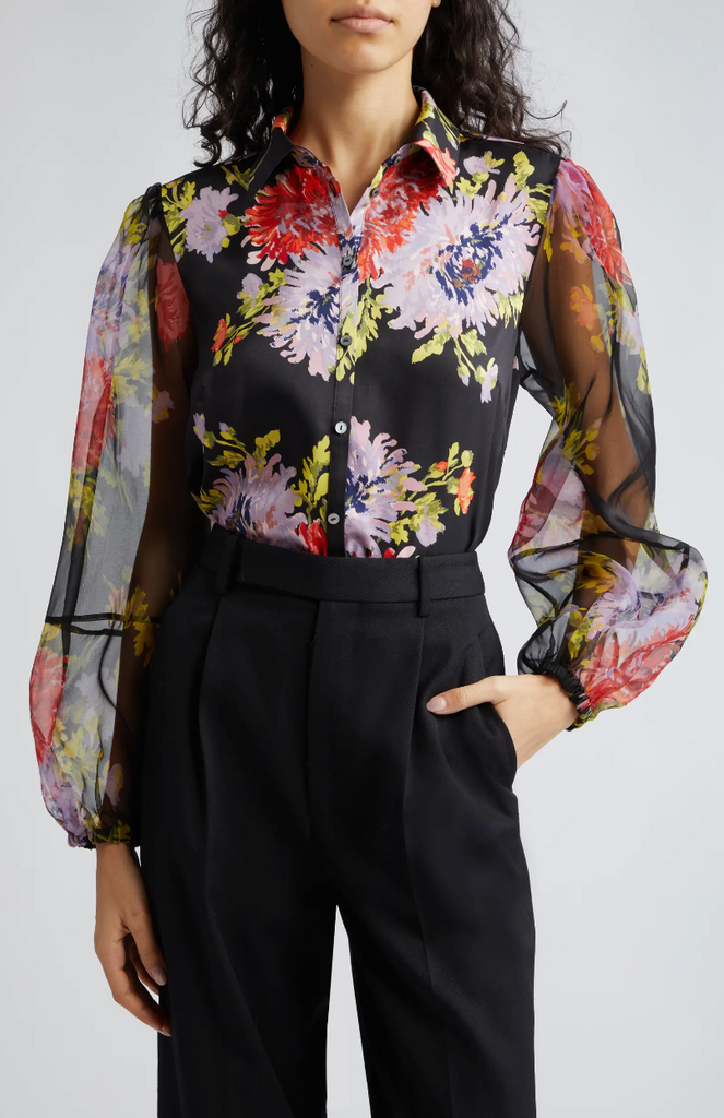 Vivid blooms romance this light and lovely shirt that's ideal from desk to dinner.