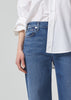 Looks Like: Medium vintage indigo with fading and subtle whiskering, finished hems