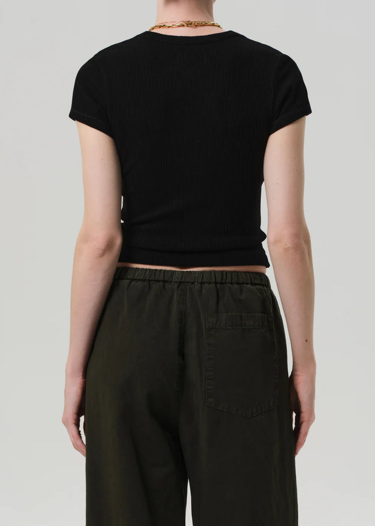 The ‘Nello’ Tee is a softly structured essential, cut in a plush sweater rib with just the right amount of stretch. Designed with a classic crew neckline and short sleeves, it offers a polished yet easy fit—ideal for layering or wearing on its own.